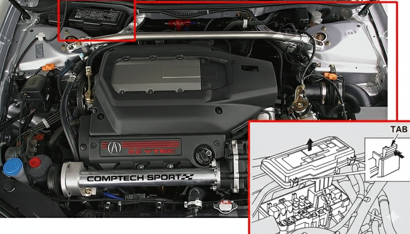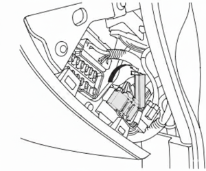 Коробка запобіжників VSA розташована під внутрішньою коробкою запобіжників з боку пасажира приладової панелі.